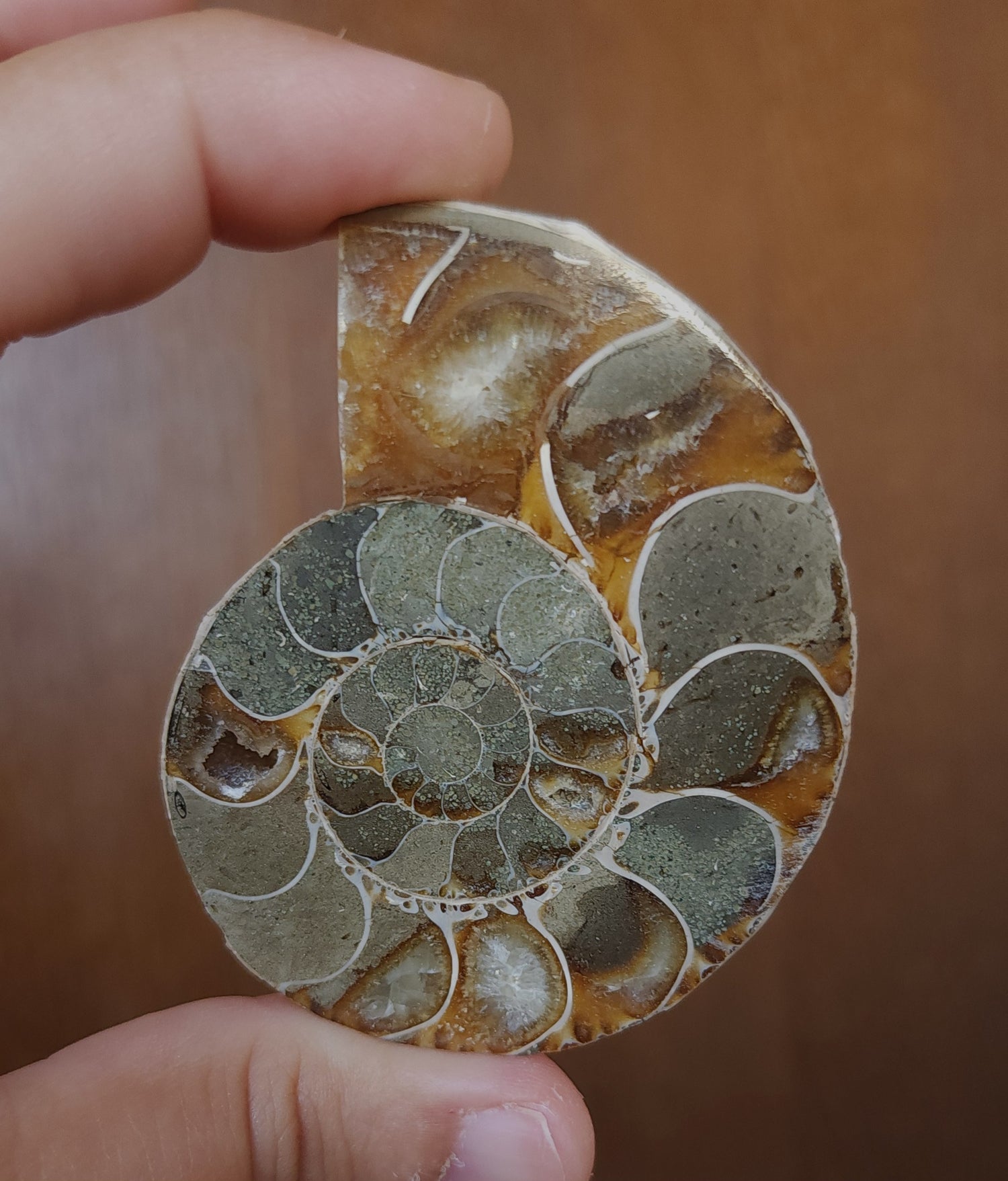 Beautiful iridescent pastel rainbow shimmer on outside. Fossilized with quartz & druzy.